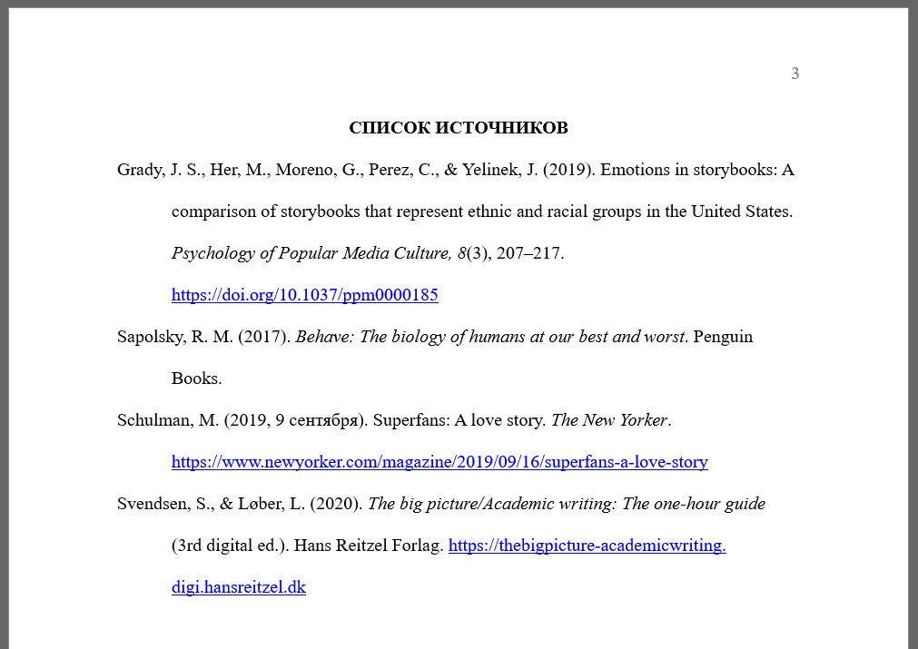 Список источников начинается с заголовка первого уровня «Список источников». Всегда начинается с новой страницы. При необходимости используйте функцию границы страницы.